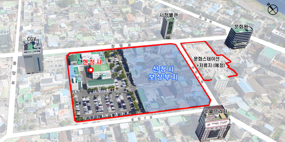 소유권 이전이 완료됨에 따라 올해 하반기에 지장물 철거공사를 시작하고 내년 하반기에는 착공식을 갖고 본격적인 신청사 건립 공사에 나설 예정이다.