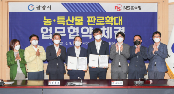 광양시는 지난 9일 시청 상황실에서 국내 농특산물 시장을 선도하고 있는 홈쇼핑 부문 1위 기업인 ㈜엔에스쇼핑과 농특산물 판로 확대를 위한 업무협약을 체결했다.
