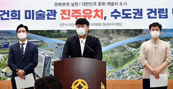 이건희 미술관 진주유치위원회 청년유치기획단은 10일 오전 11시 진주시청 브리핑룸에서 '이건희 미술관 수도권 건립 반대, 진주 유치'를 골자로 한 기자회견을 가졌다.