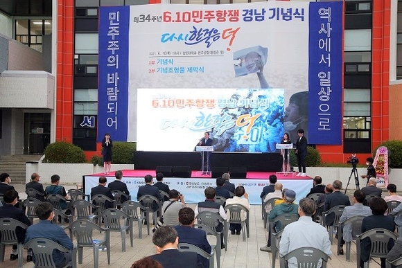 지난 10일 창원대학교 민주광장에서 6월항쟁정신계승경남사업회 주관으로 '제34주년 6·10민주항쟁 경남 기념식'이 열렸다.