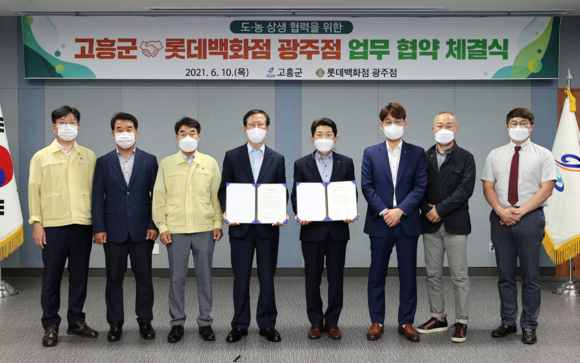 고흥군(군수 송귀근)과 롯데백화점 광주점(지점장 나연)이 함께 손을 잡고 고흥 농수산물의 판로확대를 위하여 함께하기로 했다.