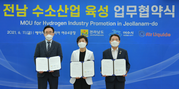 11일 여수시에 따르면 여수시, 전라남도, 에어리퀴드코리아는 이날 에어리퀴드코리아 여수공장에서 전남 수소산업 육성 발전을 위한 업무협약을 체결했다.