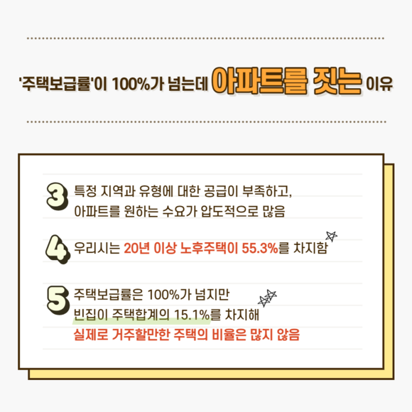그래서 실제 사람들이 쾌적하게 거주할 수 있는 집은 통계치보다 부족한 실정이다.