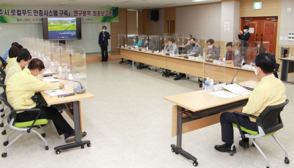 전라남도 나주시(시장 강인규)는 지난 9일 농업기술센터에서 나주농업진흥재단, 농협, 협력매장, 출하농가 등 관계자 30여명이 참석한 가운데 ‘로컬푸드 인증 시스템 구축’ 연구용역 최종보고회를 개최했다고 13일 밝혔다.