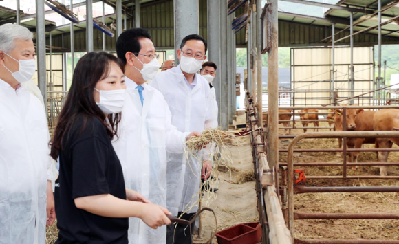 김영록 전남도지사는 12일 ‘동물복지 축산농장’ 한우 부문에서 전국 최초로 인증 받은 해남군 소재 만희농장(대표 김소영ㆍ양만숙)을 방문해 농장을 살피고 “환경친화 축산 실천으로 안전한 축산물 생산에 매진해줄 것”을 당부했다.