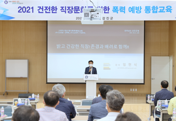 강진군은 지난 11일 강진군청소년수련원에서 군청 간부 공무원들을 대상으로 ‘건전한 직장문화를 위한 폭력예방 통합교육’을 실시했다.
