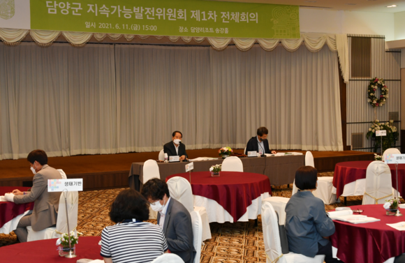 담양군은 지난 11일 제1차 지속가능발전위원회를 개최하고 2020 지속가능발전지표 평가 보고서와 담양군 그린뉴딜 중기 실행계획에 대해 심의・의결했다.