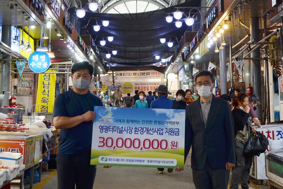 한빛원자력본부(본부장 이승철)는 지난 6월 11일(금) 영광터미널시장에서 전통시장 경쟁력 증대에 기여하고자 ‘영광터미널시장 환경개선 사업’지원금을 전달했다고 밝혔다.