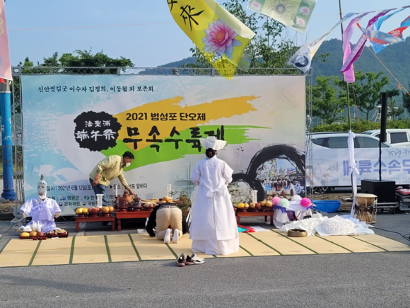 14일 영광군에 따르면 이번 법성포단오제는 코로나19 상황에 따라 군민과 관광객의 건강과 안전을 최우선으로 발열체크 등 방역수칙 준수하에 축제성 행사는 제외하고 제전행사만 축소 진행하여 국가무형문화재로서의 가치와 전통을 보전했다.