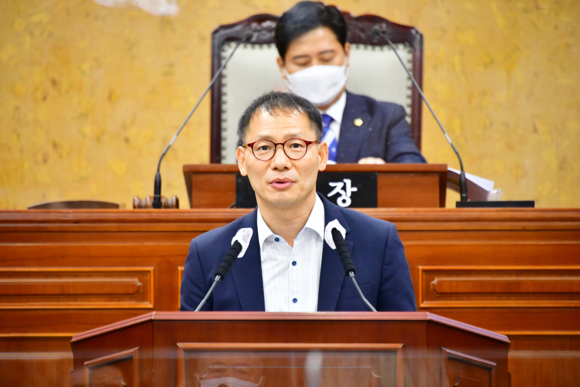 김영관 광산구의원(하남동·첨단1‧2동·비아동·임곡동)이 15일 첨단 봉산근린공원 특례사업으로 건설되는 아파트 층수를 20층 이하로 낮출 것을 요구했다.