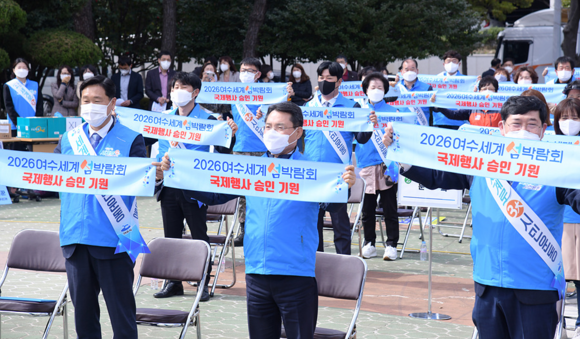 시는 지난 2월 27개 읍면동 실천본부 구성을 완료하고 3월과 4월 여서동 발대식을 시작으로 마지막 시전동까지 27개 읍면동 실천본부 788명의 위원들이 참여해 실천 다짐 결의문 낭독, 실천기 전달, 2026여수세계섬박람회 국제행사 승인 기원 퍼포먼스를 통해 시민운동의 성공 결의를 다졌다.