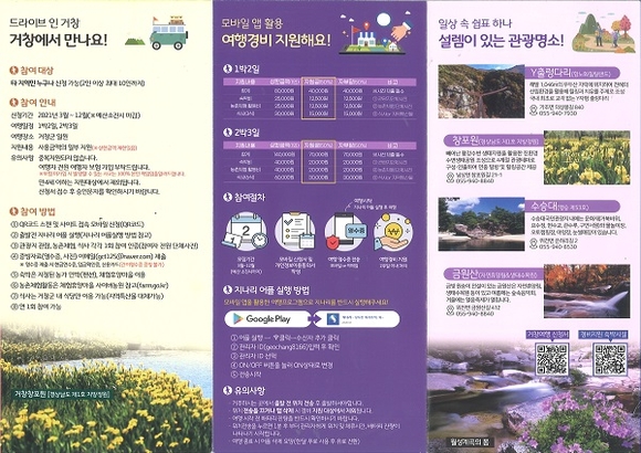지난해에는 '드라이브 인 거창' 1박 2일 프로그램을 운영해 총 2923명의 관광객이 거창을 다녀갔으며, 약 2억 1천만 원의 관광수익을 창출했다. 올해는 4천여 명의 관광객들에게 경비를 지원할 계획이며, 2박 3일 프로그램도 추가하여 지원 폭을 넓히기로 했다.