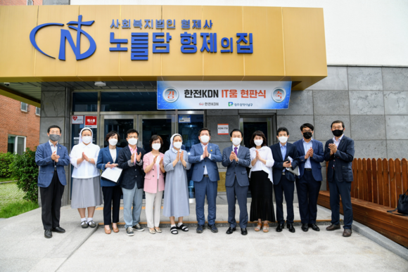 16일 남구에 따르면 이날 오후 4시 봉선동 노틀담 형제의 집에서 김병내 구청장을 비롯해 김장현 한전KDN 사장, 김희순 노틀담 형제의 집 시설장 등이 참석한 가운데 ‘한전KDN IT움’ 현판식이 열렸다.