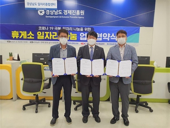 도로공사 부경본부는 16일 3자간 협약을 체결하고, 경제진흥원 일자리센터의 고용지원 서비스를 활용해 본부 관내 휴게소 관련 일자리 나눔을 위해 적극 협력하기로 했다고 밝혔다.