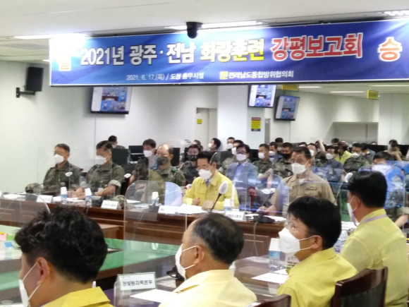 이날 보고회에는 전남도지사, 광주시장, 31사단장, 3함대사령관 등 통합방위협의회 위원을 비롯 광주ㆍ전남 시군구 단체장 80여 명이 참석했다.