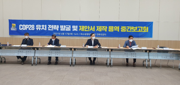 전남도는 17일 COP28 남해안 남중권 유치전략과 개최 계획을 담은 제안서를 환경부에 제출하기 위해 착수한 용역 중간보고회를 개최했다. 용역은 COP28 개최 요건에 따른 환경·사회·문화적 배경을 분석하고, 남해안 남중권만의 유치전략 발굴과 제안서 제작을 위해 지난 4월 착수해 10월 마무리할 예정이다.