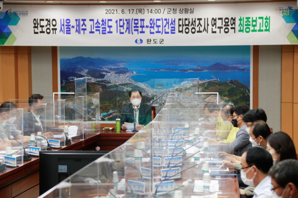 완도군은 지난 17일 완도를 경유하는 서울~제주 고속철도 1단계(목포~완도) 건설 타당성조사 연구 용역 최종 보고회를 개최했다고 밝혔다.