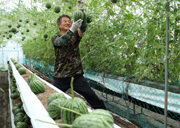 지난 18일 전남 강진군 군동면 아람영농조합법인에서 애플수박 수확이 한창이다. 사과만 한 수박이라 하여 이름 붙여진 ‘애플수박’은 기존 수박의 1/5크기로 가볍고(1~1.5kg) 1~2인 가구라도 수박 한 통을 남기지 않고 한 번에 가장 신선한 상태로 먹을 수 있다.