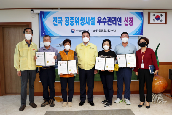 무안군(군수 김산)은 지난 18일 행정안전부가 주최하고 화장실문화시민연대에서 주관한 제22회 전국 공중화장실 우수관리인 시상식에서 무안군 직원 4명이 우수관리인에 선정됐다고 밝혔다.