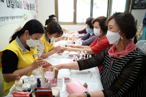 이날 한들농협의 보이스피싱 피해 예방 교육을 시작으로 발마사지, 네일아트, 커트, 염색 등 봉사를 진행하고, 오후에는 신나는 노래교실을 시작으로 한방, 치과진료, 협압·혈당 체크 등 의료봉사활동을 실시해 코로나19로 지친 마을주민들의 심신을 달래줬다.