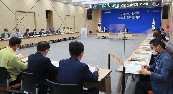 경남 함양군은 22일 민선 7기 3주년 성과를 공유하고 당면과제를 점검하는 '민선7기 3주년 군정 주요성과 보고회'를 가졌다.