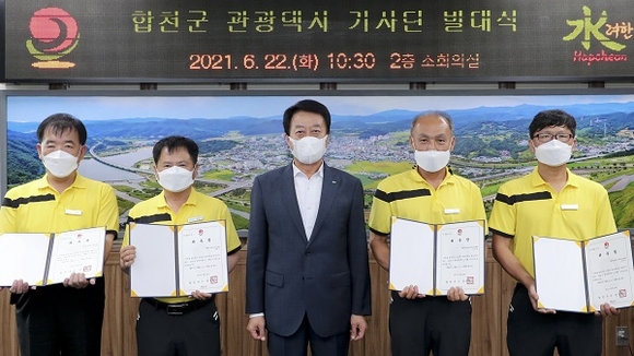 문준희 군수는 위촉자들에게 “여러분들은 합천군 관광의 얼굴임을 잊지 않고 단순한 관광지 안내자가 아닌 여행의 동반자가 되어 관광객들의 만족을 위해 최선을 다해주시기 바라고 마스크 착용 등 방역수칙을 철저히 준수하여 코로나로부터 안전하게 운행해주시길 부탁드린다”고 당부했다.