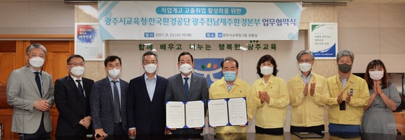 광주시교육청이 23일 상황실에서 한국환경공단 광주전남제주환경본부와 ‘직업계고 고졸 취업 활성화를 위한 업무협약식’을 개최했다.