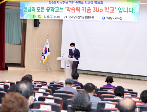 그 중 가장 눈길을 끈 것은 ‘학습력 키움 3Up 학교’이다. 전남 도내 모든 중학교에서 운영될 예정인‘학습력 키움 3Up 학교’는 △ 학생의 자기주도적 학습력 Up △ 교사의 수업 및 평가 전문성 Up △ 학교의 교육경쟁력 Up을 목표로 한다. 단위학교에서는 3Up을 위해 수업, 평가, 학습코칭 영역에서 중점적으로 추진할 사항을 학교구성원과 협의해 이를 중심으로 학력격차 해소에 나선다.