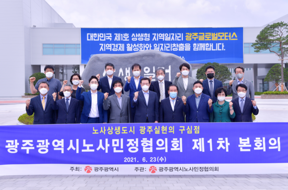 광주광역시는 노사상생 문화 조성을 통한 일자리 창출과 지역경제 활성화를 위해 ㈜광주글로벌모터스 브리핑룸에서 23일 ‘노사민정협의회 1차 회의’를 개최했다고 밝혔다.