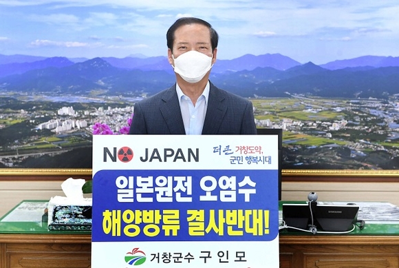 구인모 거창군수가 23일 일본 후쿠시마 원전 오염수의 해양 방류를 규탄하는 릴레이 챌린지에 동참했다.