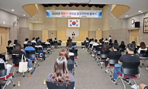 고흥군은 대학생들이 다양한 행정 경험을 쌓고 지역에 대한 애향심 고취의 기회를 제공하고자 연 2회 여름방학과 겨울방학에 행정인턴을 운영한다.