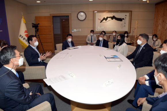 이용섭 광주광역시장은 24일 오전 시청 접견실에서 우즈베키스탄 노짐 후사노프 고용노동부장관 일행을 접견하고 코로나19 시대 광주시와 우즈베키스탄 양국의 노동시장과 노동환경 등 상호 관심사를 논의했다.