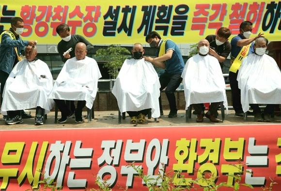 집회는 결의문 낭독으로 열기를 더 했으며, 배몽희 의장, 황강취수장 설치반대 군민대책위원회 이종철 공동위원장, 마홍렬 감사, 송정호 위원, 권재영 위원 등 5명의 삭발을 통해 취수장 설치를 규탄했다.