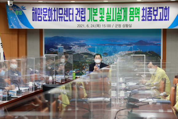 완도군은 지난 24일 군청 상황실에서 「해양치유 블루존 조성」 사업의 일환인 해양문화치유센터 건립을 위한 기본 및 실시설계용역 최종 보고회를 개최했다고 밝혔다.