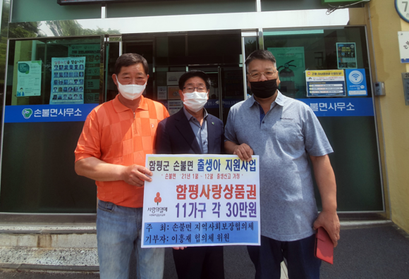 이 사업은 손불면에 출생신고를 한 11가구를 대상으로 가구당 30만 원의 함평사랑상품권을 지원하는 손불면 특화사업이다.