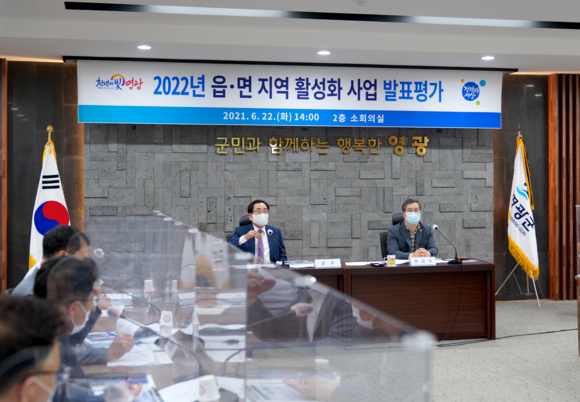 영광군(군수 김준성)은 지난 22일 군청 소회의실에서 김준성 군수를 비롯한 공모사업 평가위원 및 공모사업에 응모한 9개 읍·면장과 읍·면 직원이 모인 가운데 ‘2022년 읍·면 지역 활성화 사업’ 공모 발표평가를 실시했다.