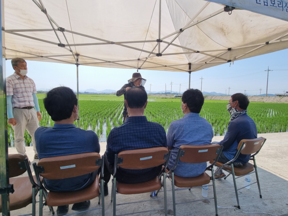 이번 컨설팅은 ‘외래품종 대체 최고품질 벼 생산공급 거점단지 육성 시범 사업’과 관련하여 재배품종으로 선정된 ‘진상2호, 새청무’ 품종의 순도높은 종자생산을 위해 벼 유효분얼기 잡수제거 기술을 중심으로 진행됐다.