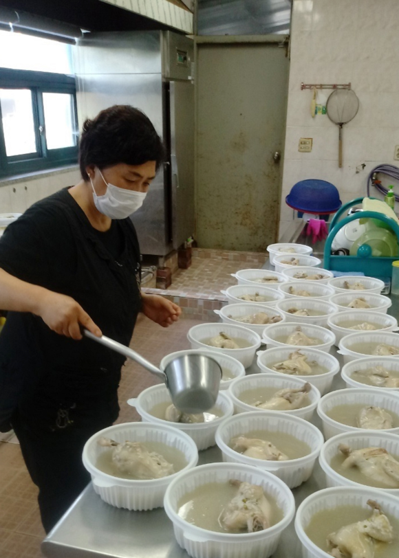 삼계탕 등 음식 준비는 함평읍여성자원봉사단체 회원들이 조리봉사로 참여해 힘을 보탰다.