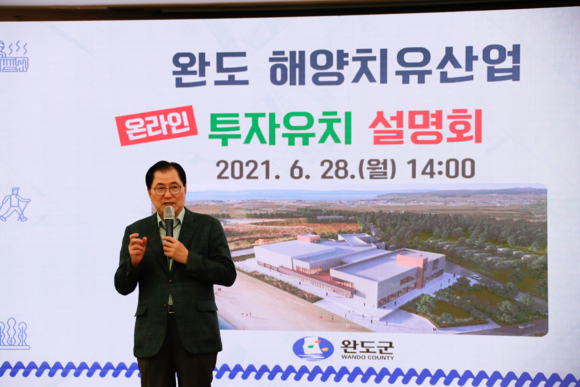완도군은 지난 28일 해양치유산업화의 원년을 맞아 ‘해양치유산업 온라인 투자 설명회’를 개최했다.
