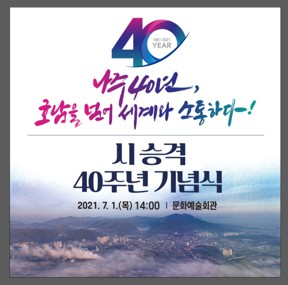 나주시(시장 강인규)는 오는 7월 1일 오후 2시부터 문화예술회관에서 ‘시 승격 40주년 기념식’을 개최한다고 28일 밝혔다.