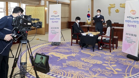 경남 합천군은 28일 청와대 세트장에서 2021 합천 '역대 영재 vs 여자 정상' 연승 대항전 개막식과 개막 경기를 가졌다고 밝혔다.