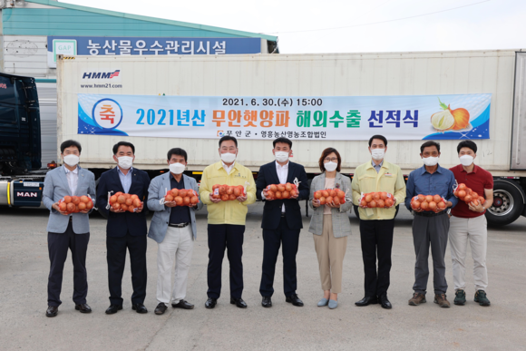 무안군(군수 김산)은 30일 망운면 영흥농산영농조합법인에서 만생종 무안 햇양파 해외 수출 선적식 행사를 개최했다.