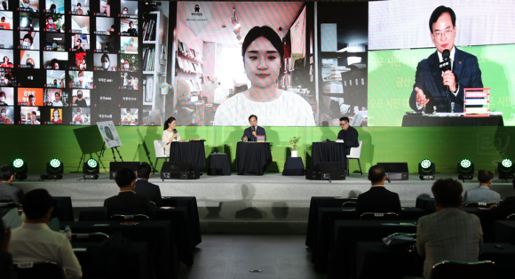 이날 ‘걸어온 길, 나아갈 길, 행복으로 가는 길’을 주제로 열린 행사에는 현장 초청 80여 명, 온라인 줌(ZOOM) 참여단 100명, 유튜브 생중계 등으로 각계각층 시민이 참여했다. 3자 대담, 시민이 묻고 구청장이 답하다, 시민 덕분에 시상식, 내가 생각하는 행복 퍼포먼스 등 민선7기 3년의 발자취를 돌아보고, 비전을 공유하는 시간이 마련됐다.