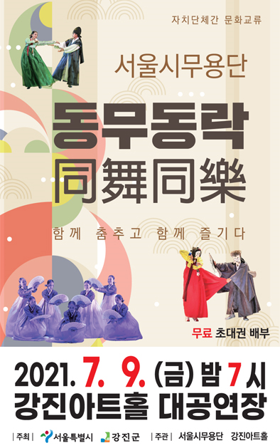 오는 7월 9일(금) 오후 7시 강진아트홀 대공연장에서 아름답고 화려한 우리춤으로 함께 즐기는 서울시무용단의 ‘동무동락’이 막이 오른다.