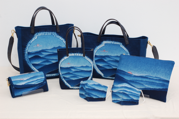 ‘블루의 품격’은 천연염료인 쪽염료에 방염과 침염을 반복 염색해 지리산을 달 항아리속에 넣고, 자개 포인트와 가죽에 한글 각인 등을 해 한국적인 미를 표현했다.