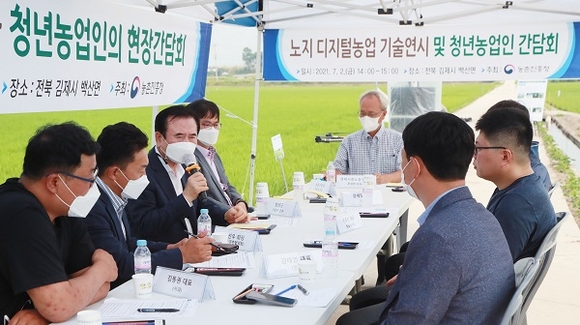 이어 오후에는 전북 김제 노지 디지털 영농현장을 방문해 노지 디지털기술 시연을 관람하고 현장간담회를 개최했다.