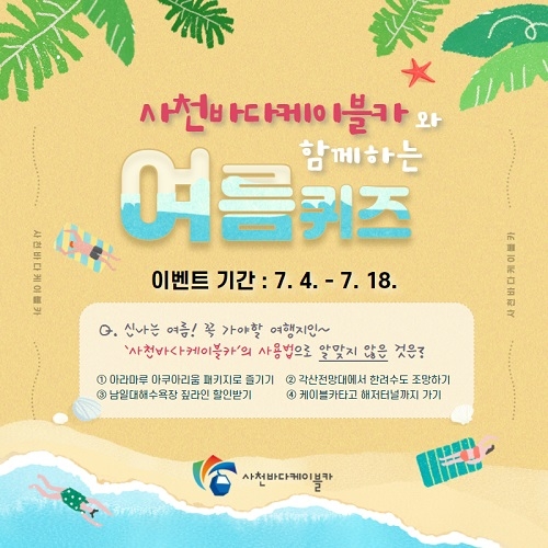 공단은 오는 18일까지 '사천바다케이블카와 함께하는 여름퀴즈! 케이블카 사용법'이라는 SNS 이벤트를 진행할 예정이다.