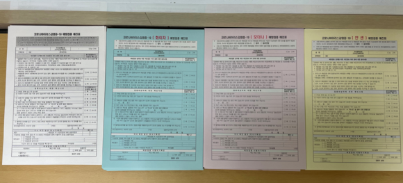 광산구는 아스트라제네카는 흰색, 얀센은 노란색, 화이자는 파란색, 모더나는 분홍색으로 구별한 예진표를 위탁의료기관에 배부하고 있다.