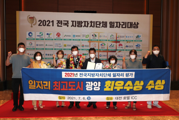 광양시는 고용노동부가 주관하는 2021년 전국지방자치단체 일자리 평가에서 최우수상을 수상했다.