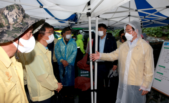 또한 “호우특보가 발효 중인 가운데 집중호우로 지반이 매우 약해진 상태”라며 “산사태 우려가 있는 급경사지, 범람 우려가 있는 하천 등 저지대 재해 취약지 주민은 이상 징후를 잘 살펴 마을회관 등 지정된 장소로 안전하게 대피할 것”을 당부했다.